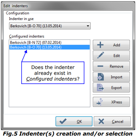 Instrument > Indenters.. 에 들어가면 압자를 선택할 수 있다.