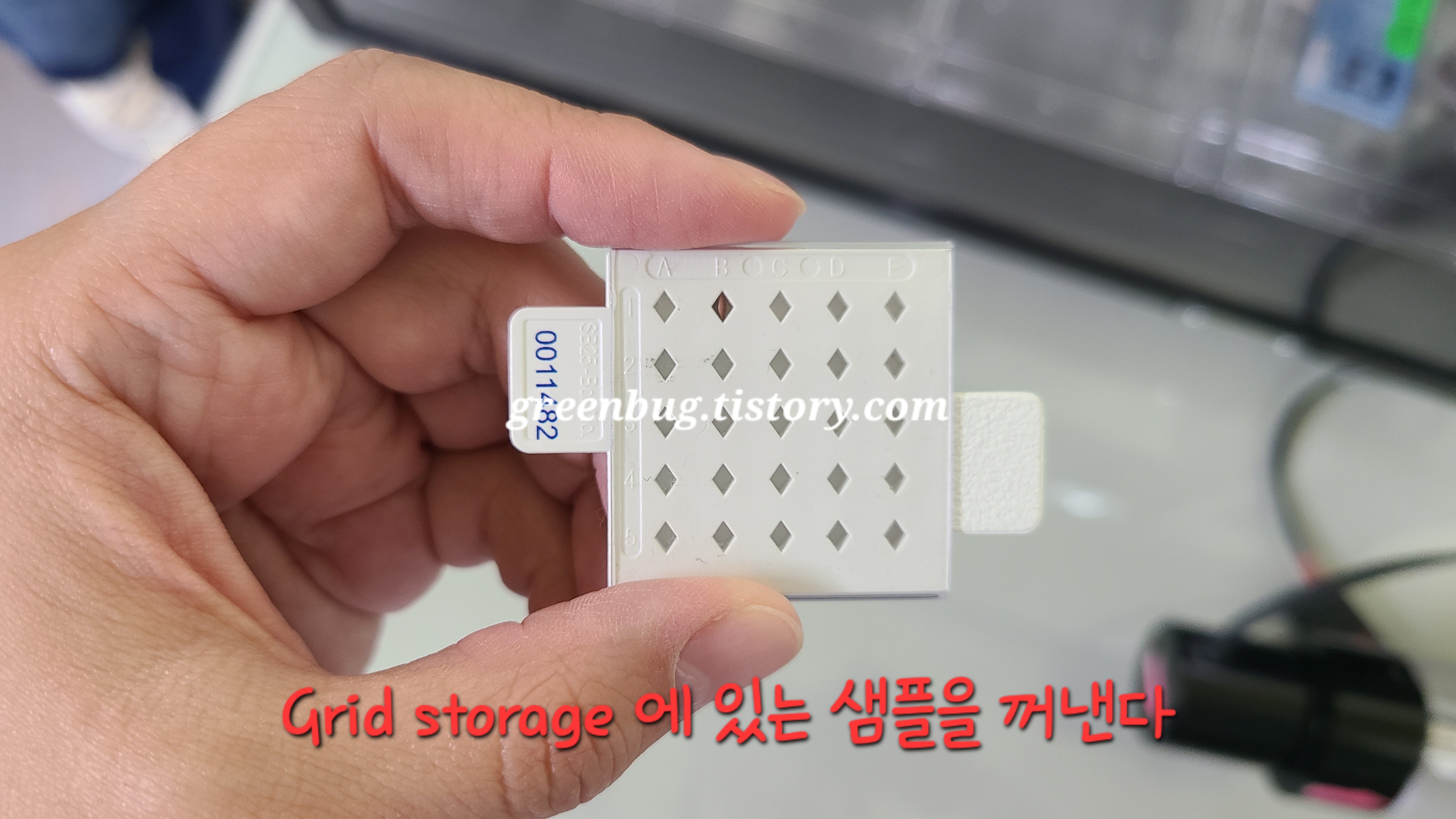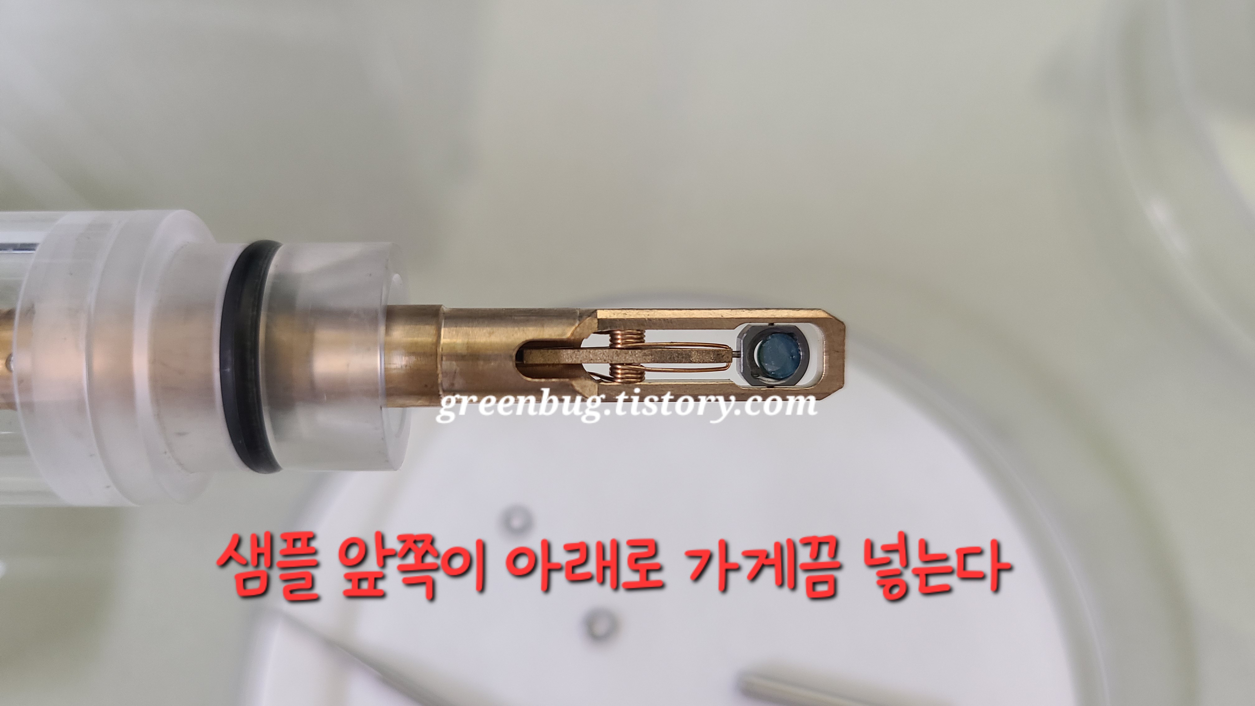 2. 샘플 있는 면이 아랫쪽에 가게끔 넣는다.