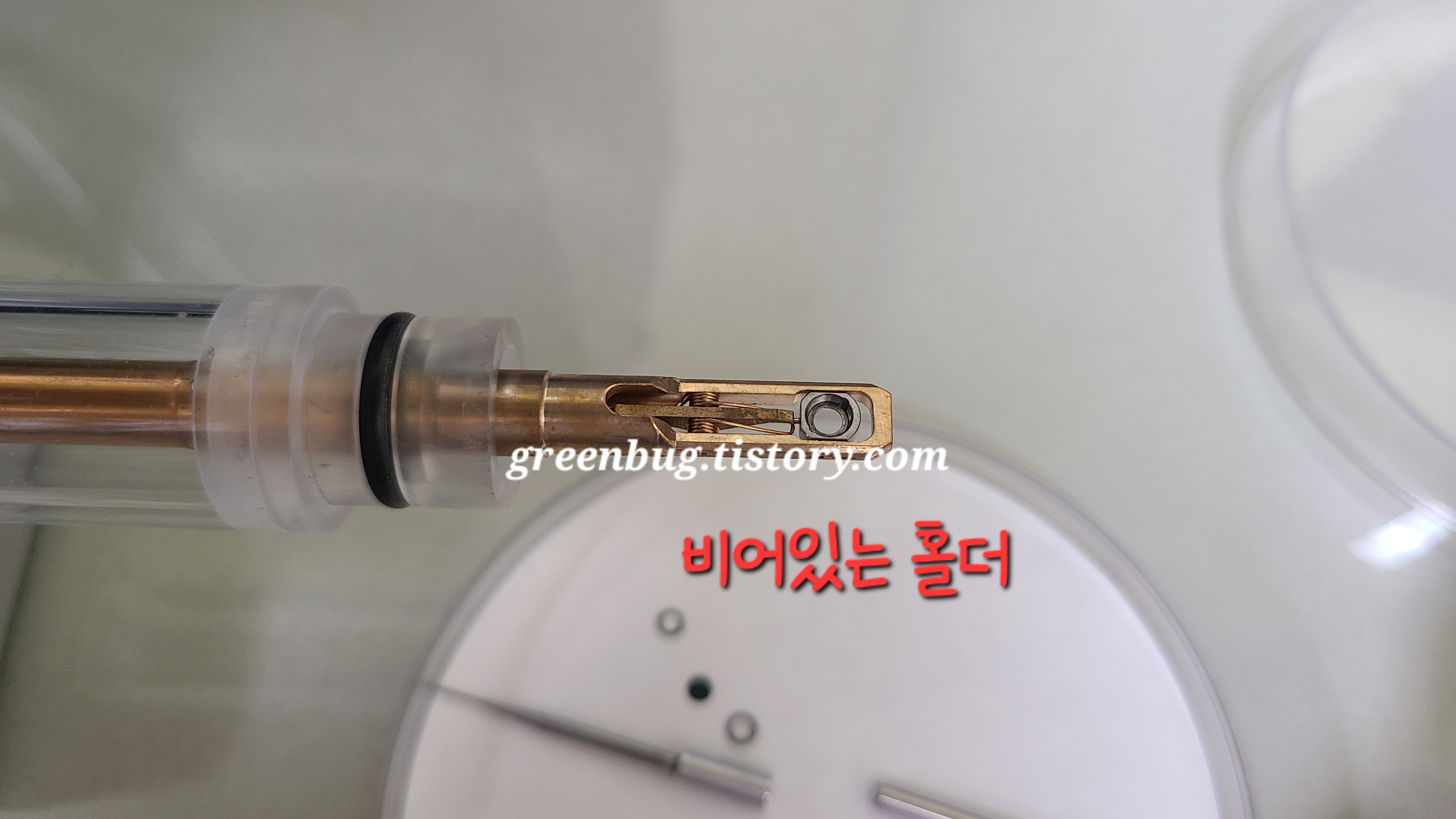 ※ 꽉 잡고 있어야한다! (안쪽이 진공이라서 확 빨려 들어간다) 손을 놓아버리면 홀더, 진공이 다 손상 될 수 있다.