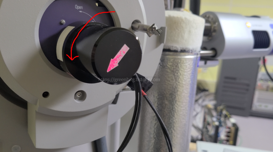6. 빨간 불이 꺼진 것을 확인한 후, 샘플 홀더를 넣는다.