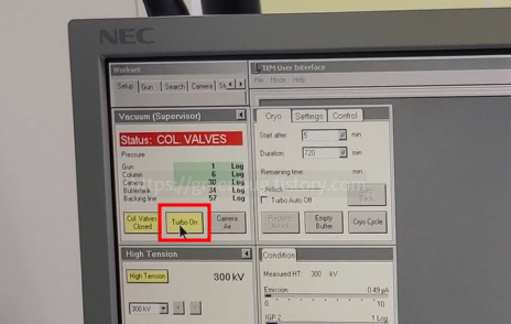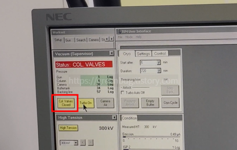 10. Col Valves Closed를 눌러서 Beam을 켠다